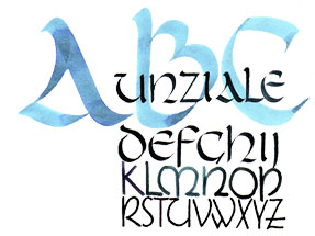 Diese wunderschöne Großbuchstabenschrift entstand im 2.-3.Jhd. aus der römischen Kursive. Sie wurde mit der Rohrfeder auf Pergament geschrieben. Viele historische Manuskripte sind bis heute in in dieser Schrift erhalten. Im Laufe der Jahrhunderte veränderte sie sich und es entstanden Kleinbuchstaben.